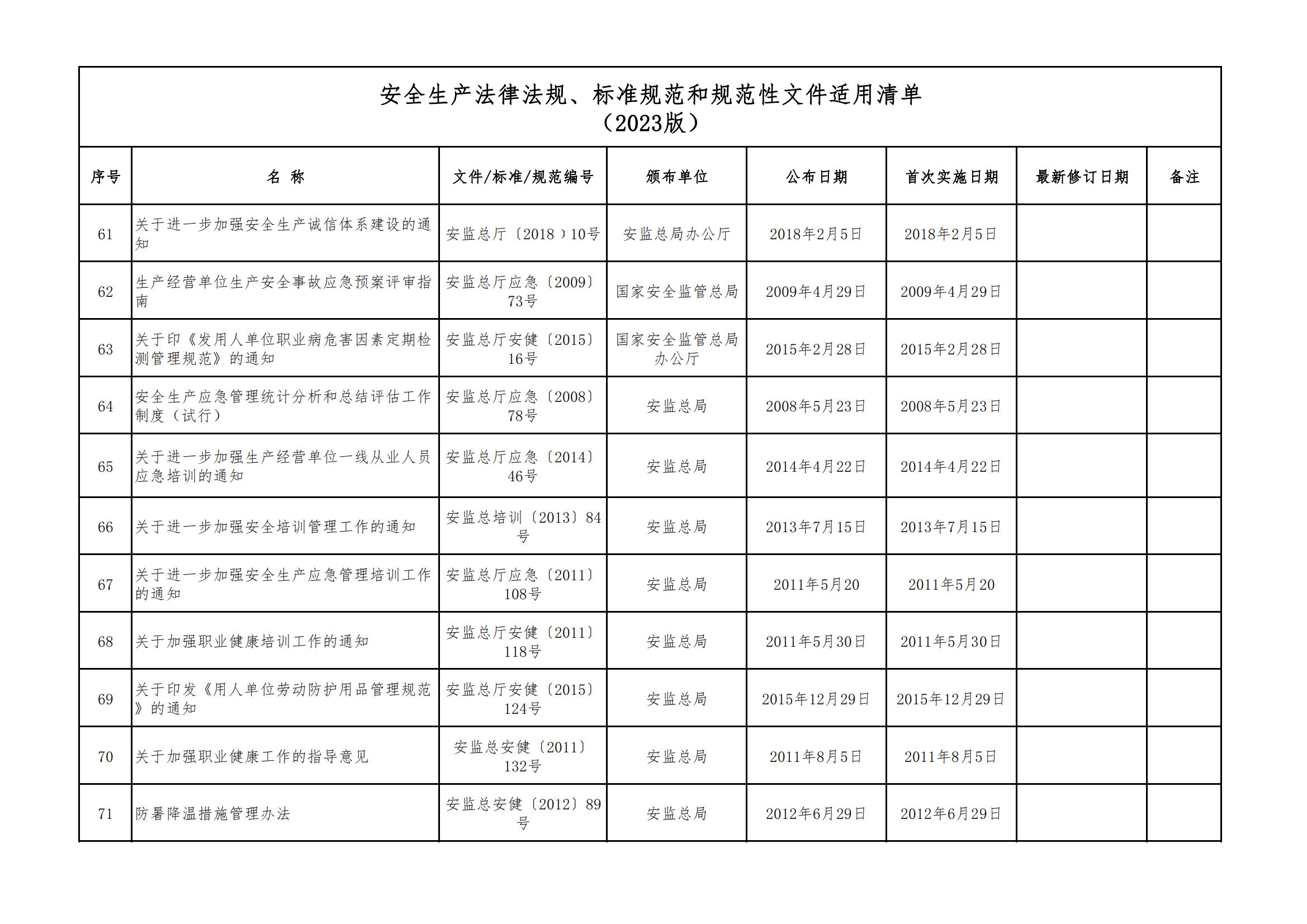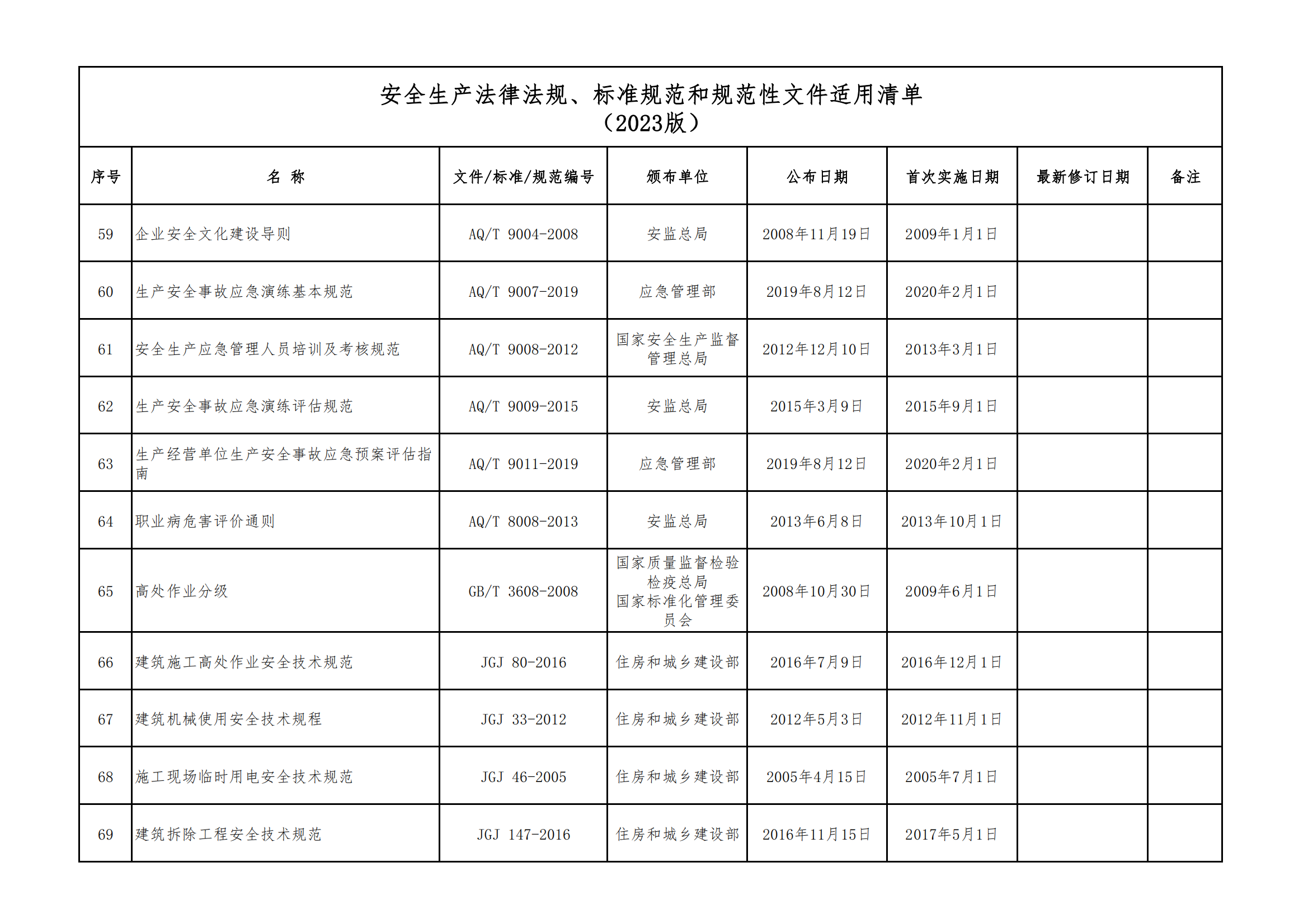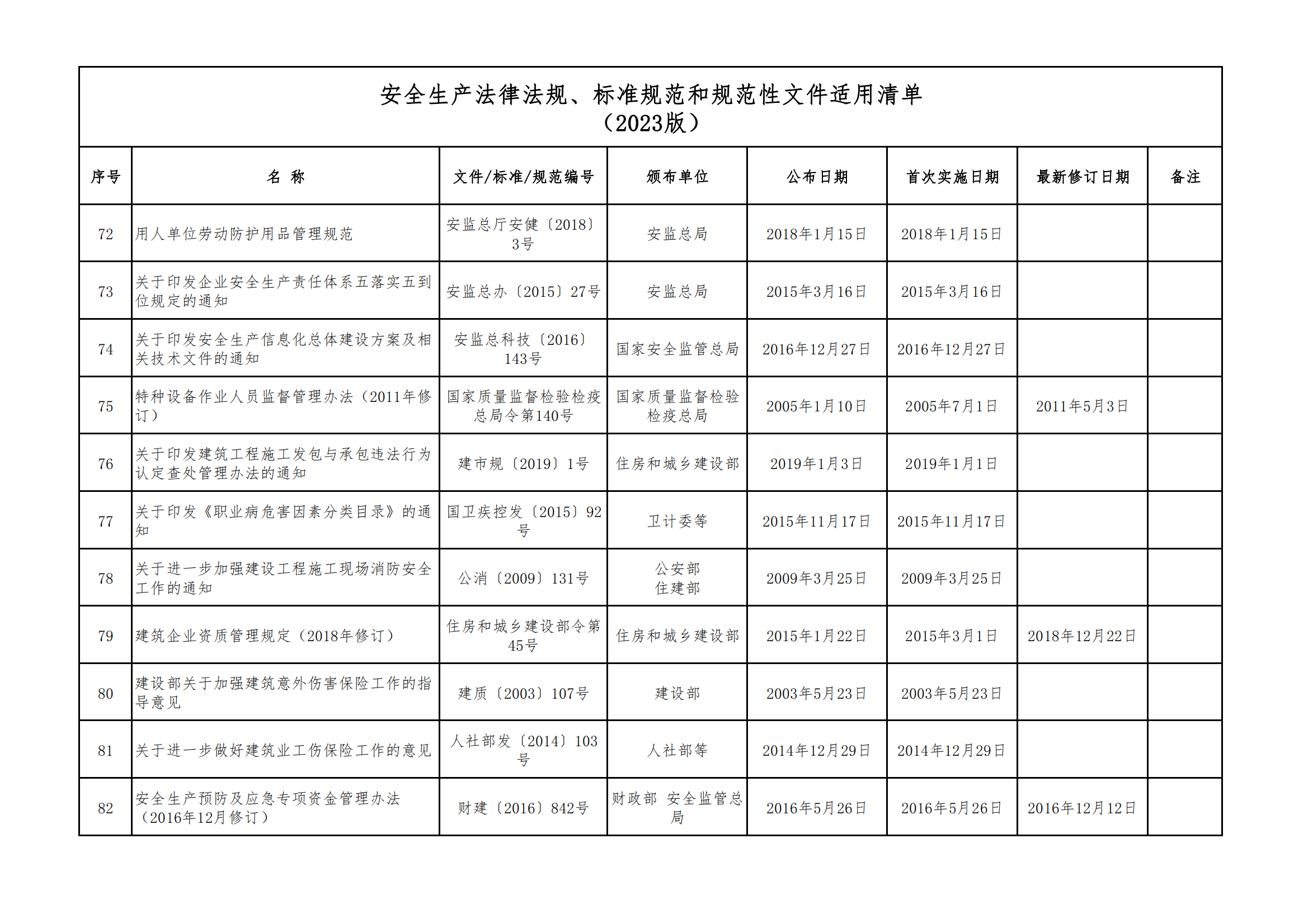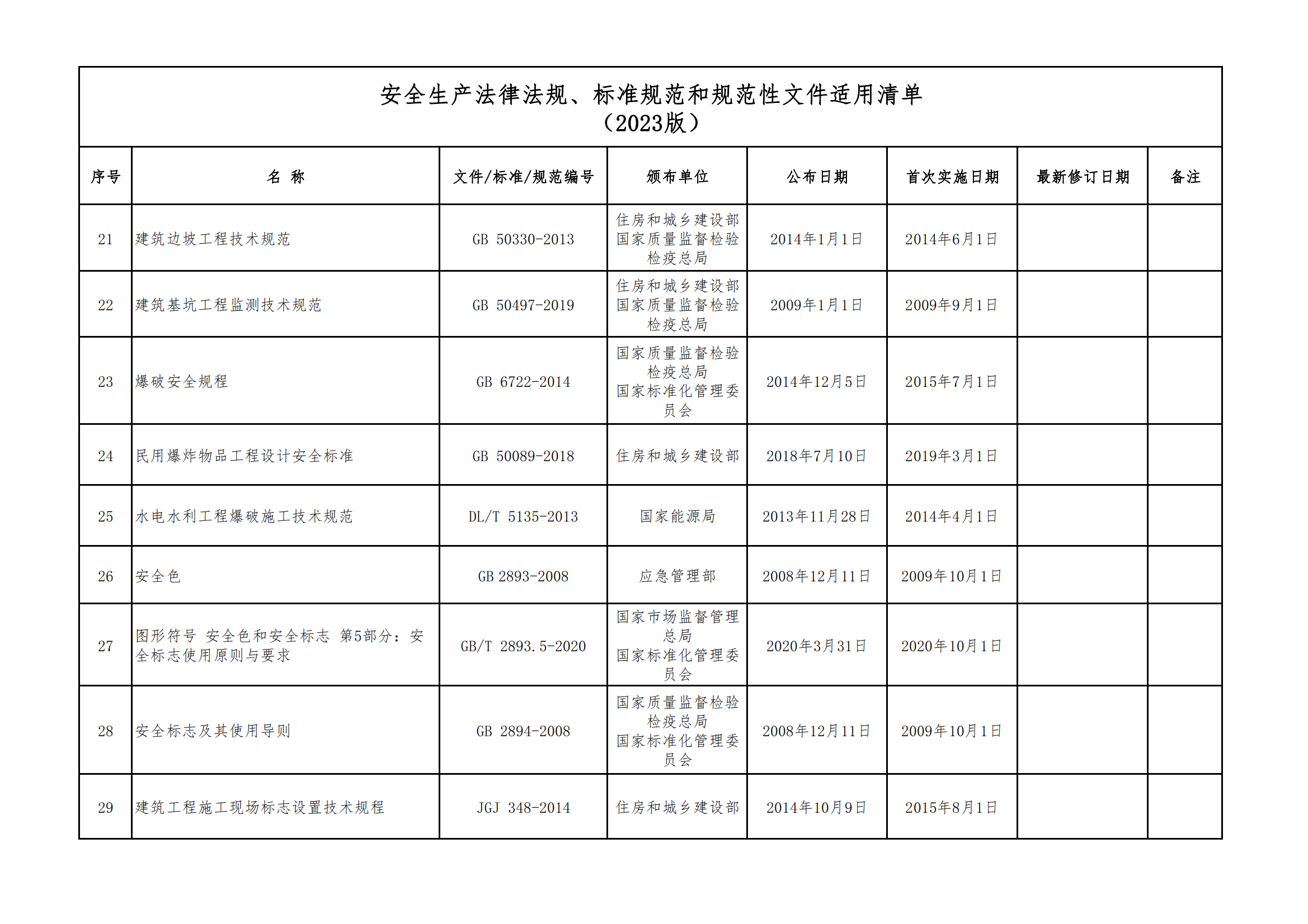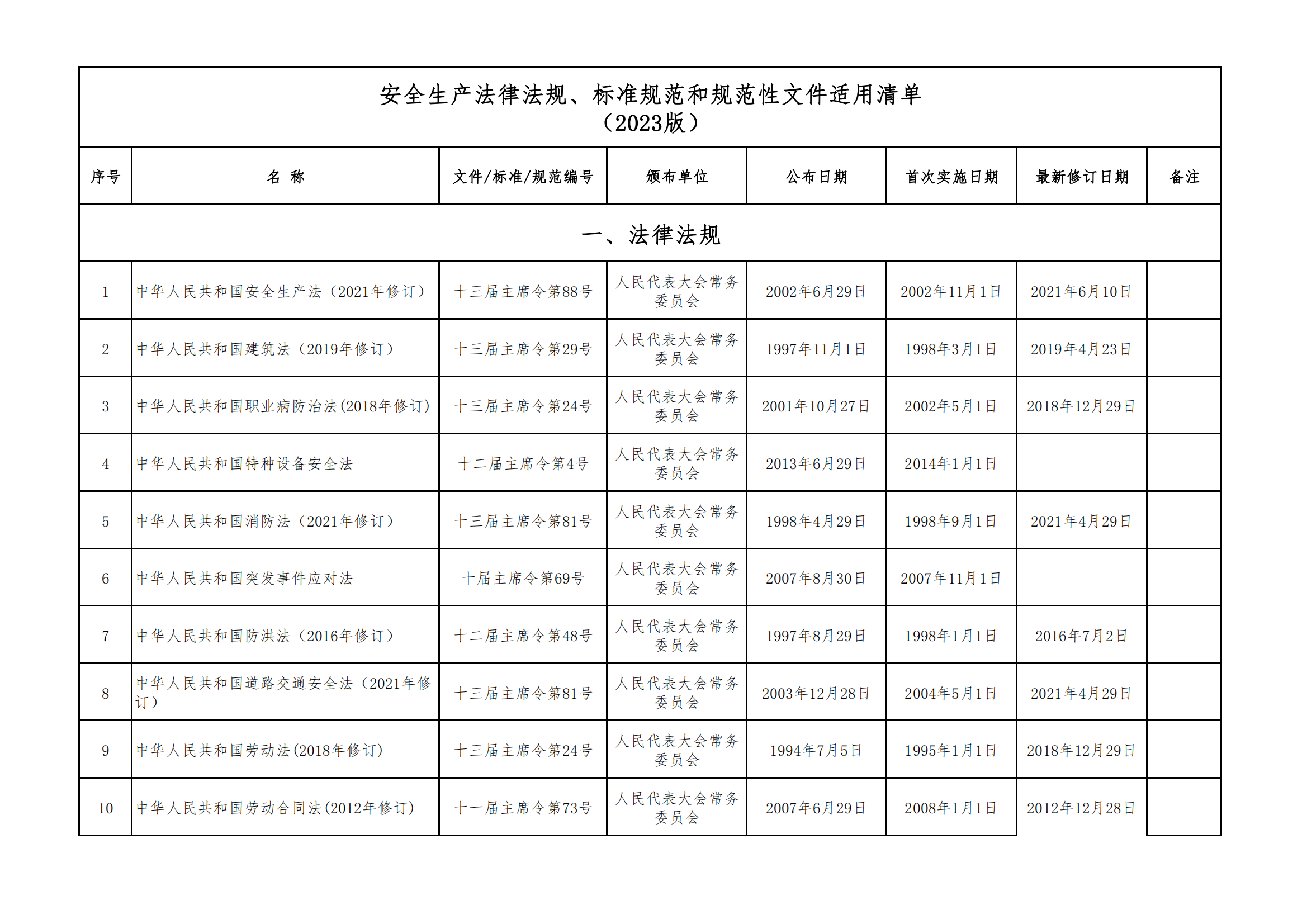 安全生產(chǎn)法律法規(guī)、標(biāo)準(zhǔn)規(guī)范和規(guī)范性文件適用清單