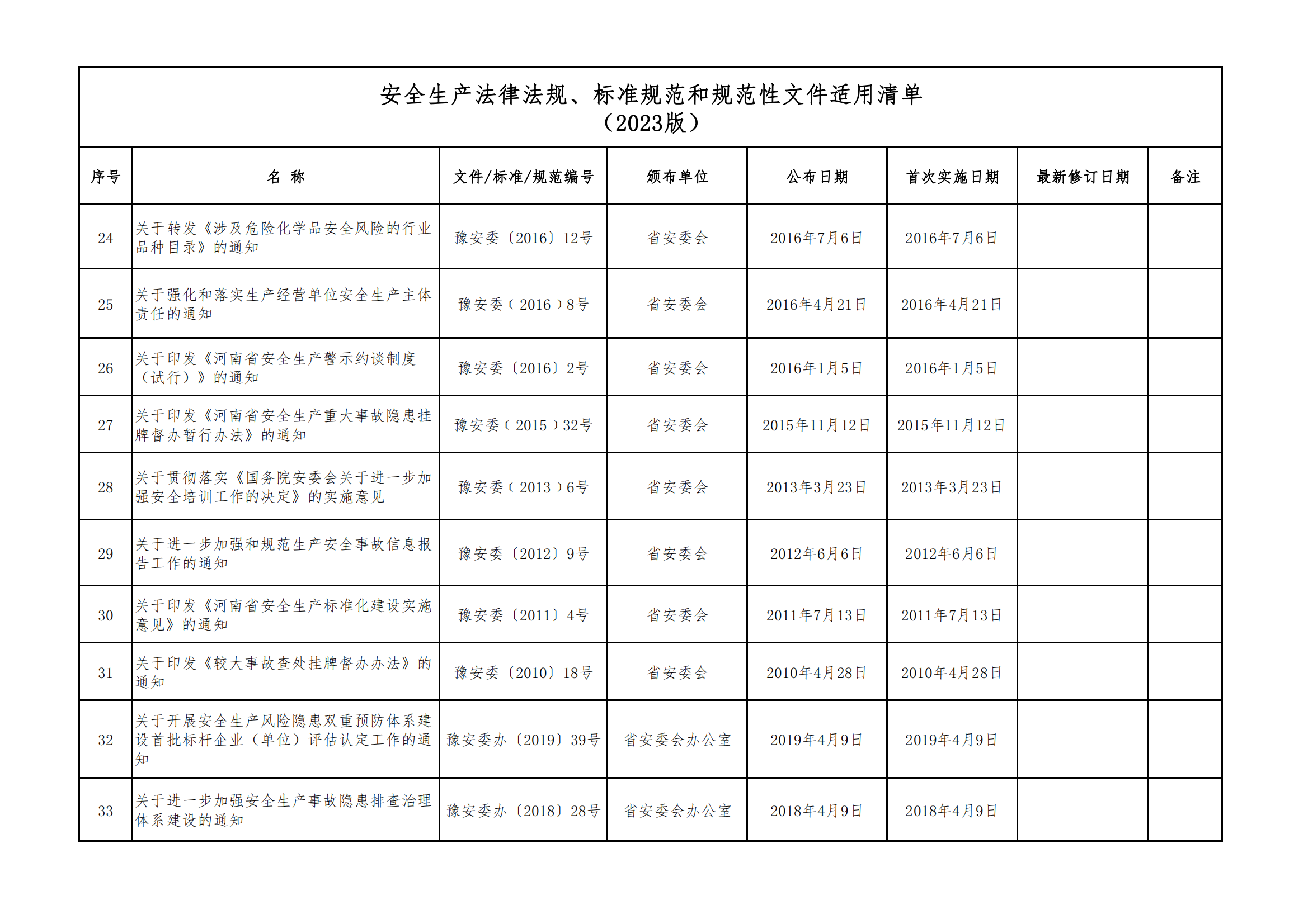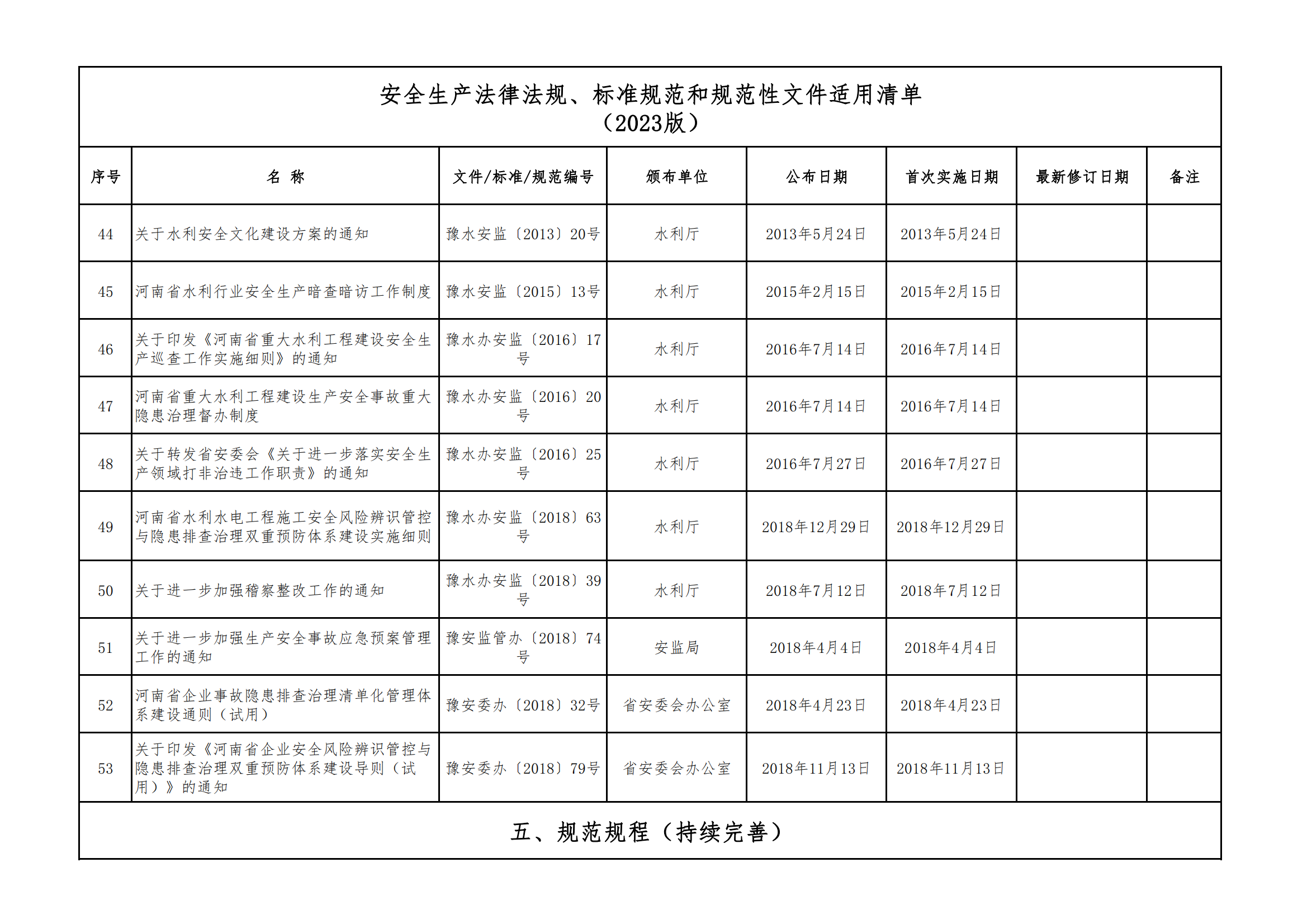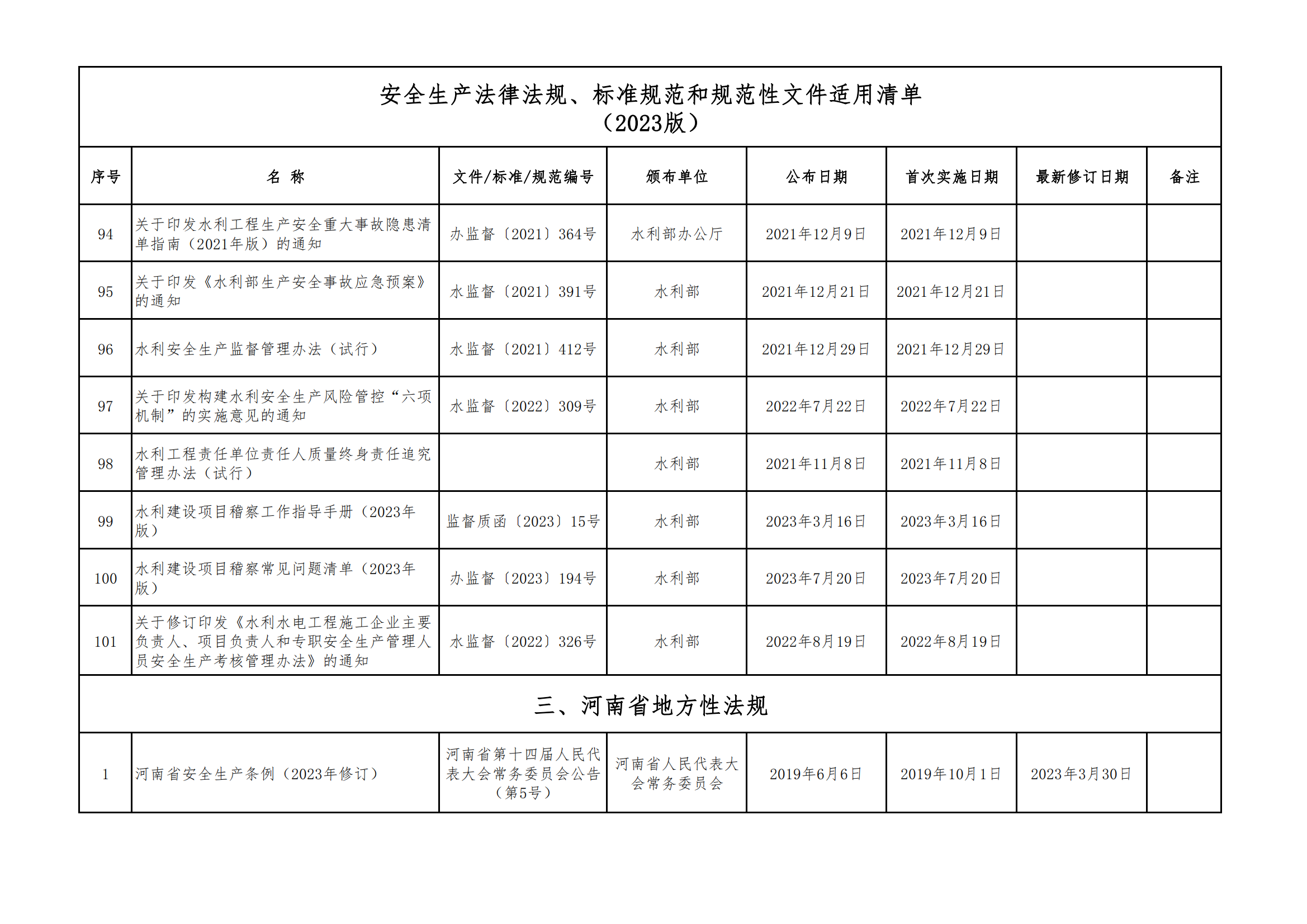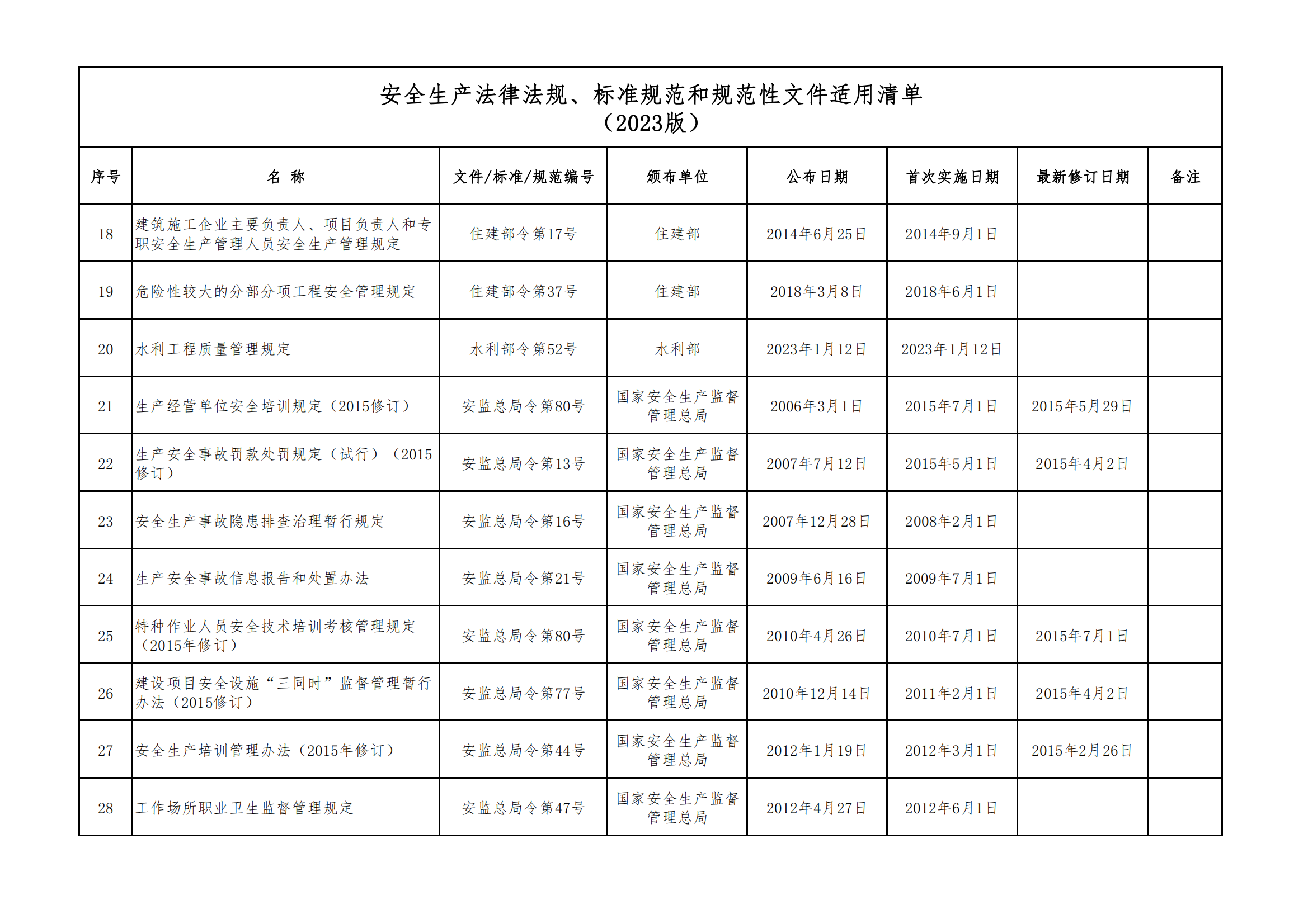 安全生產(chǎn)法律法規(guī)、標(biāo)準(zhǔn)規(guī)范和規(guī)范性文件適用清單