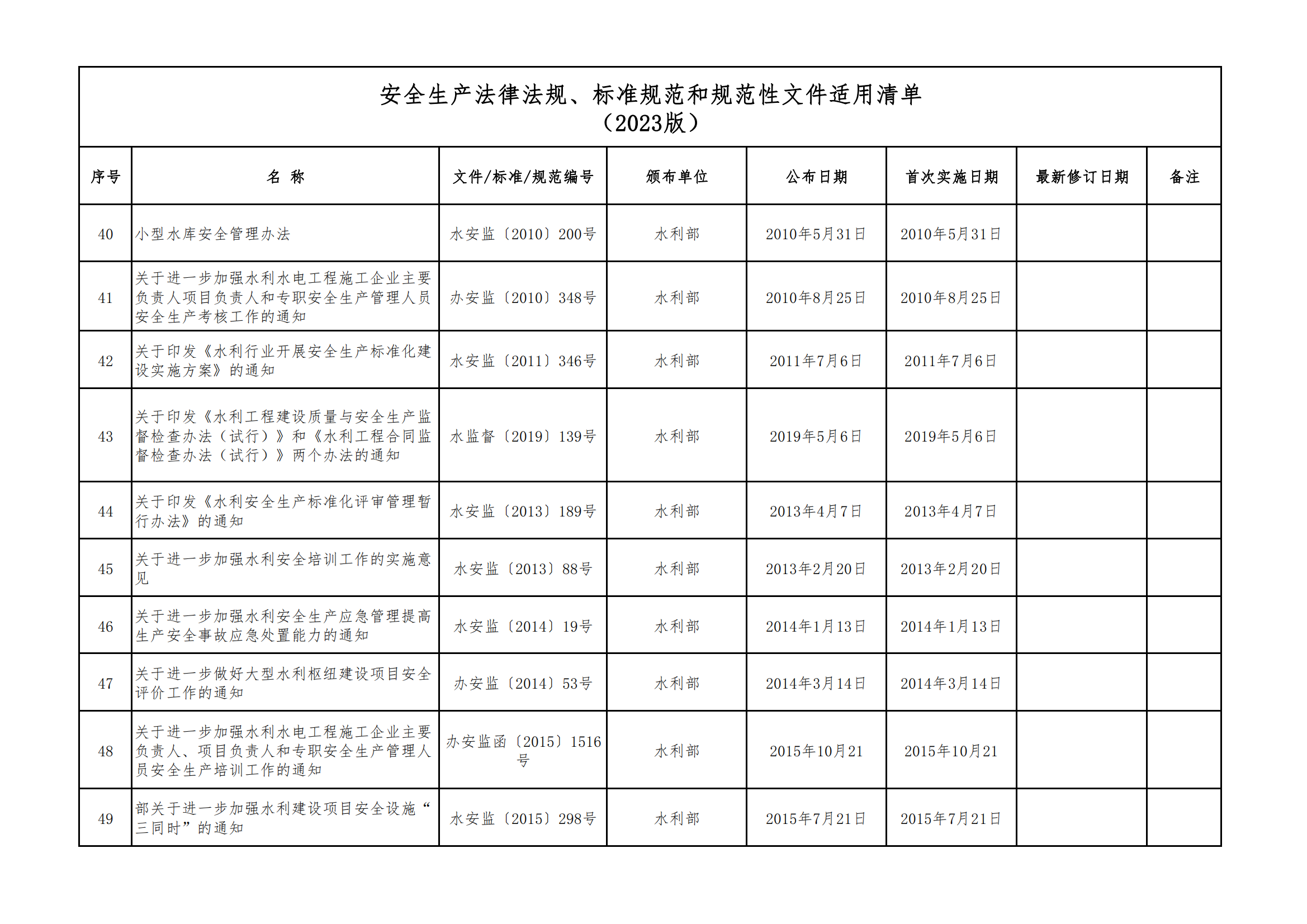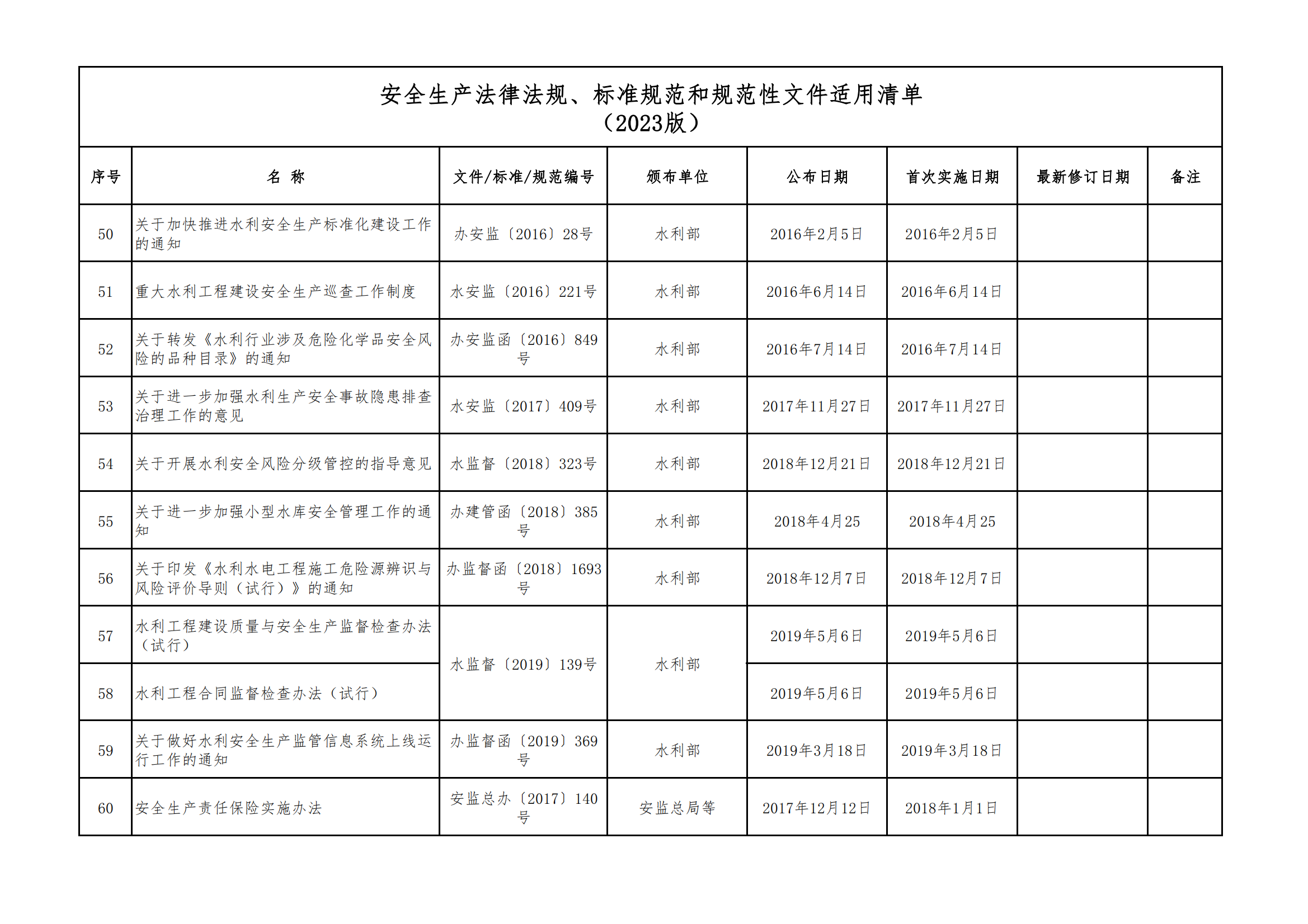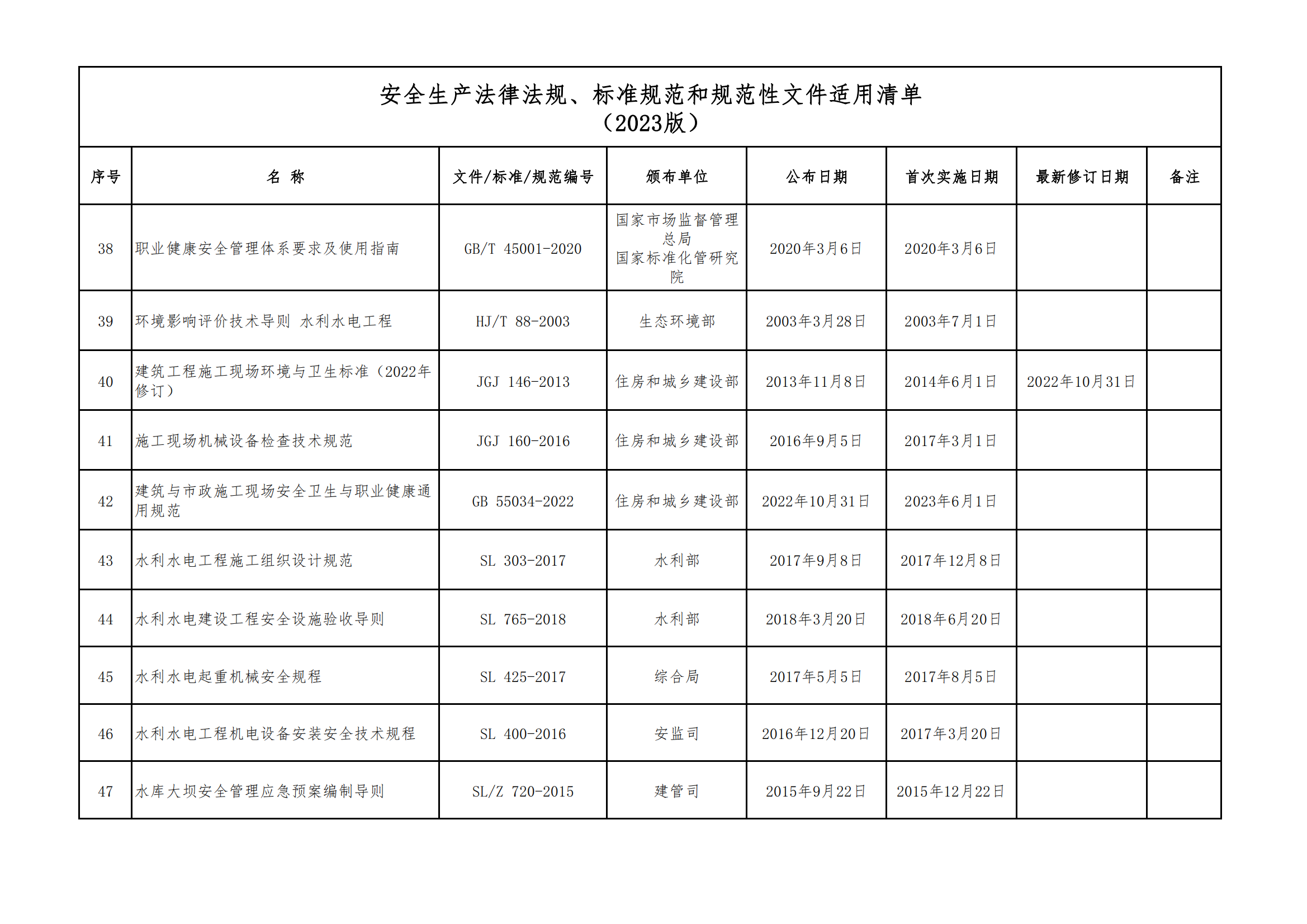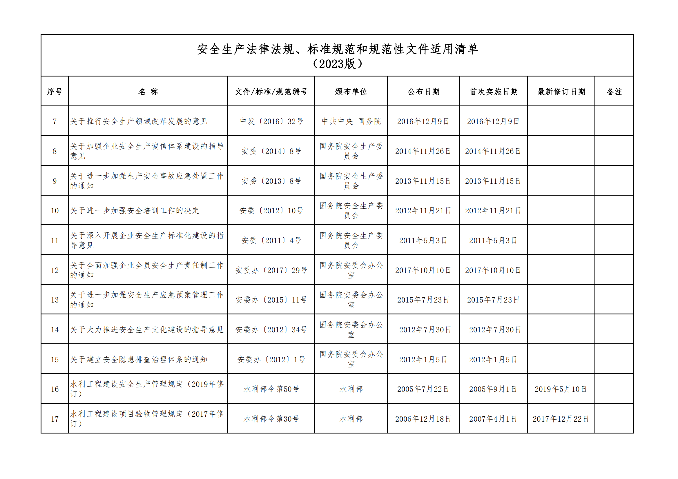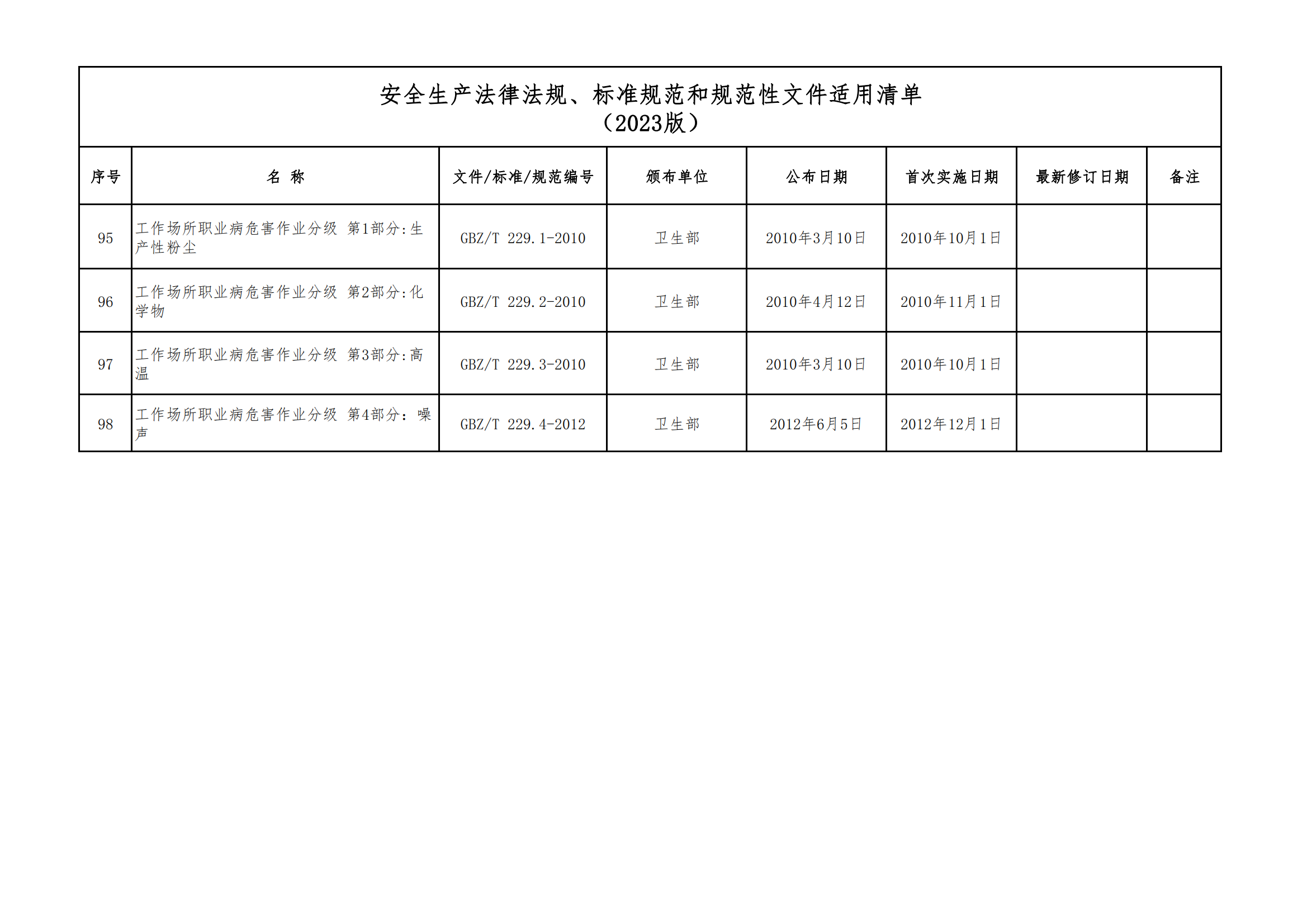安全生產(chǎn)法律法規(guī)、標(biāo)準(zhǔn)規(guī)范和規(guī)范性文件適用清單