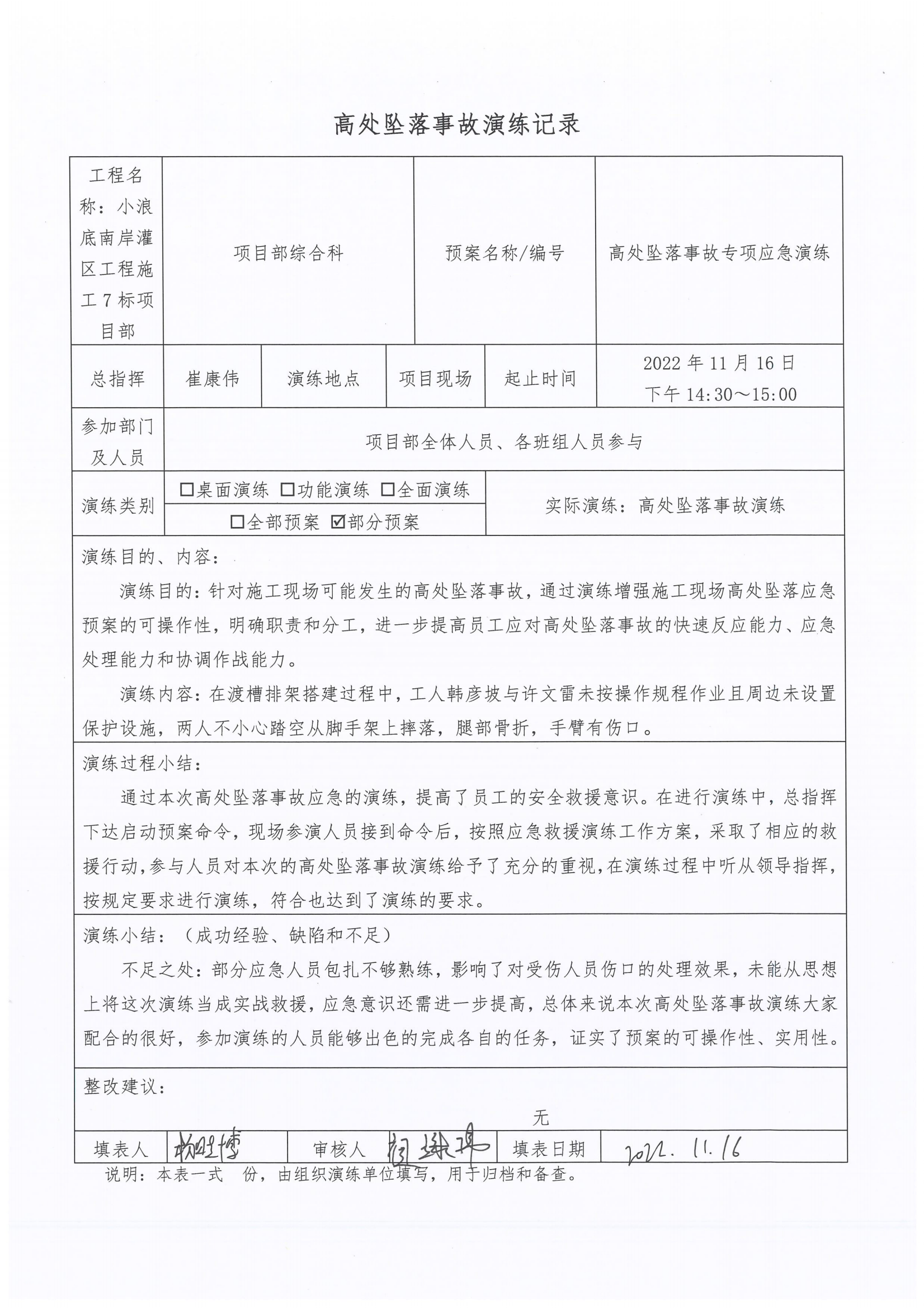 高墜事故應急演練-7標