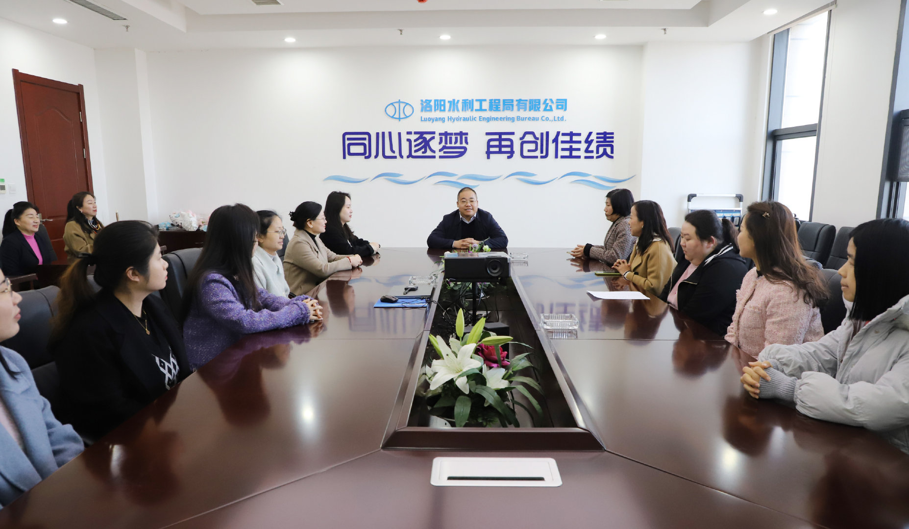 陽(yáng)春三月春意濃,人面桃花相映紅,第114個(gè)“三八”婦女節(jié)如期而至,為充分調(diào)動(dòng)女職工工作積極性、主動(dòng)性和創(chuàng)造性,增強(qiáng)女職工的向心力和凝聚力,3月8日上午,集團(tuán)公司李東坤等領(lǐng)導(dǎo)到中共洛陽(yáng)水利工程局有限公司委員會(huì)(以下簡(jiǎn)稱(chēng)“公司黨委”)為女職工送上鮮花和節(jié)日美好祝福。
