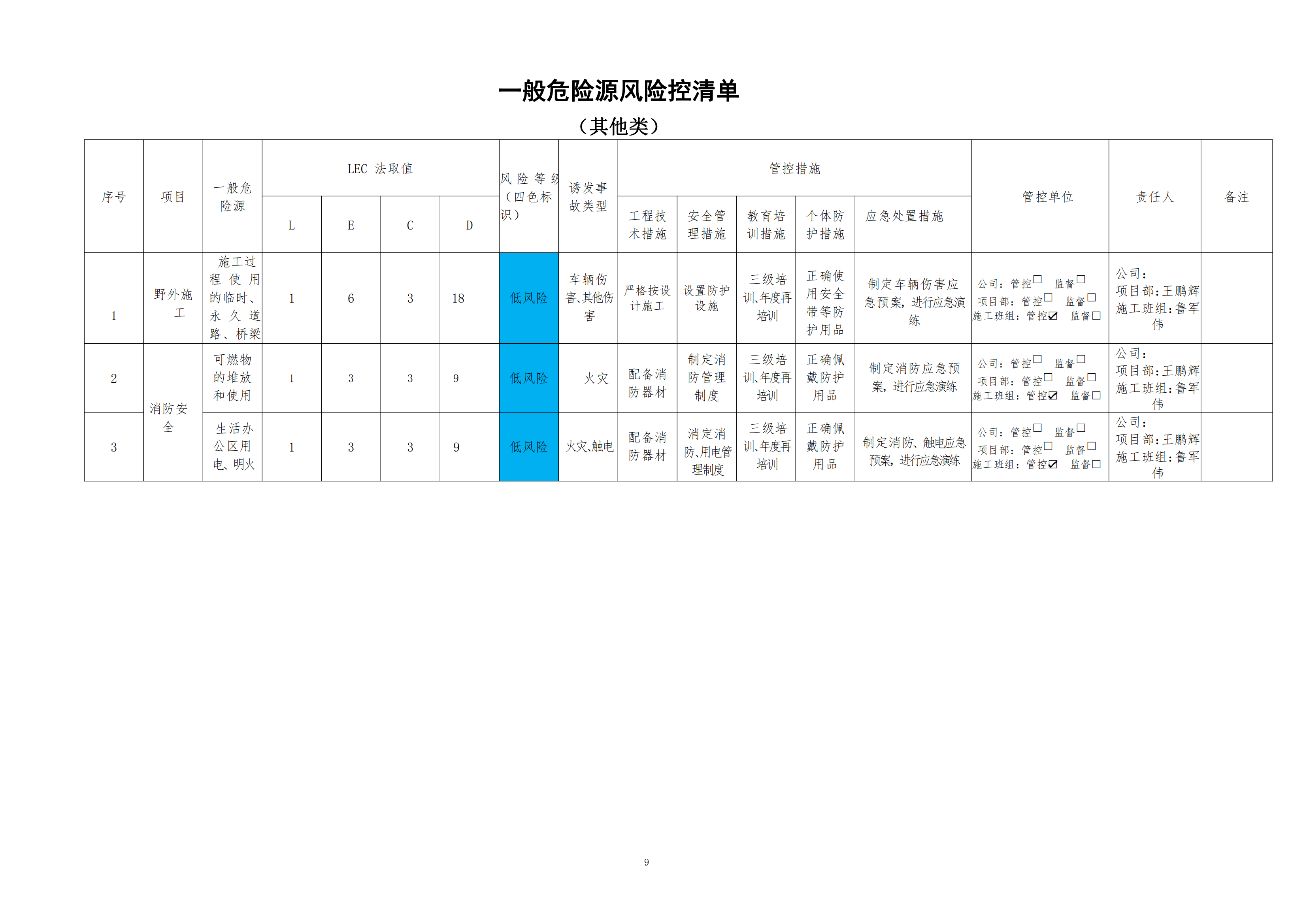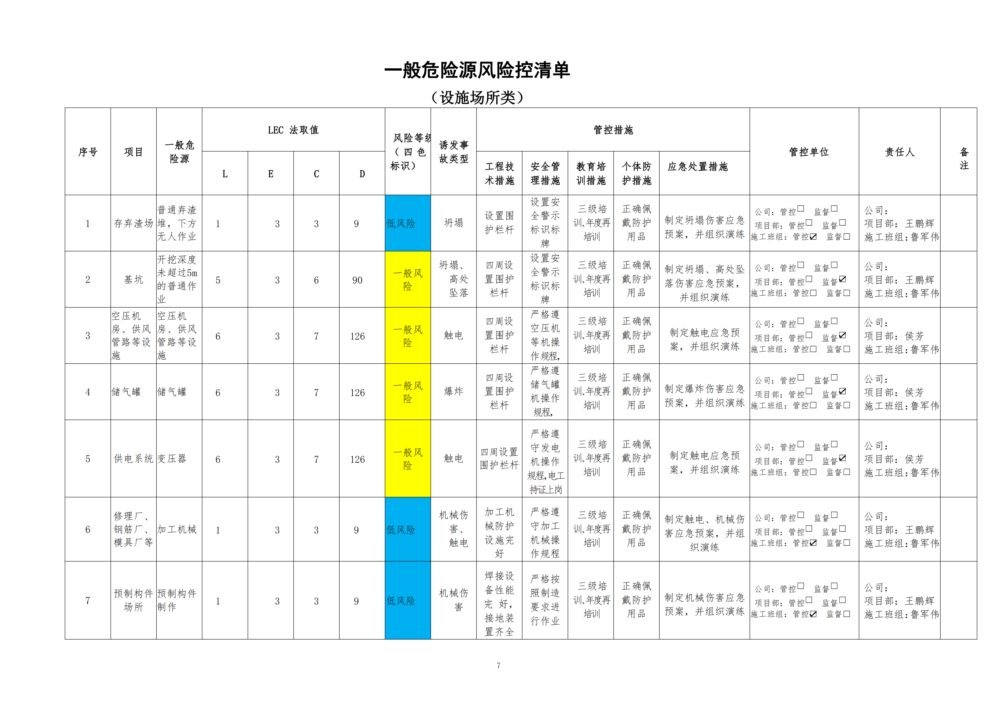 欒川縣新建水庫一期工程施工一標(biāo)段危險源風(fēng)險分級管控清單(6月)